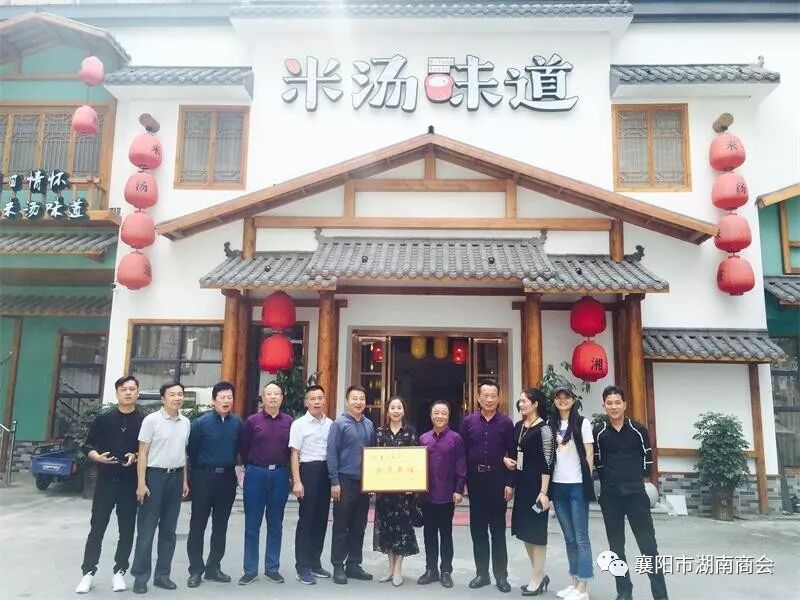 一番参观浏览后,由商会顾问组、监事会、秘书处组成的走访团来到店外,由商会监事会主任、九月份商会轮值会长单延延先生向米汤味道的法人夏静文女士颁发襄阳市湖南商会"会员单位"牌匾。